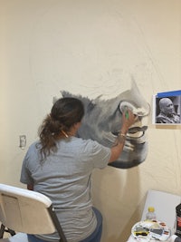 “I was artist before I was a tattoo artist. I love doing non-commissioned pieces. Purely from the love of creating and being inspired. There's nothing like the gift of art for someone. I find myself drowning and zoning out in materials I'm learning how to use rather than the materials I'm experienced in. I can get lost for a long time that way. Murals are a hidden passion of mine. Cans, airbrushes, acrylic are what I like to combine my pieces with more than anything. I like making use of the materials I find around me. Creating without being prepared is something that happens often with me. When I go I just go, and I won't take much time to prep or think about it once I get that fire in my brain. There's joy in just making it work when it has to and losing all the organized thoughts along the way. I think that's the moment when it turns into therapy and you have that exact reassurance that makes that space and time become exactly where you need to be.”